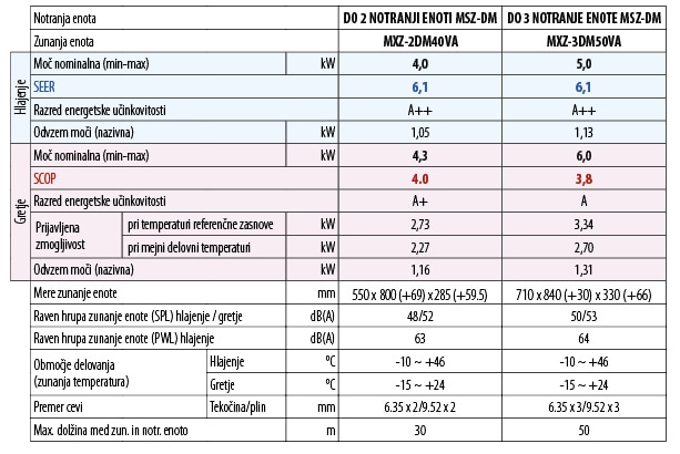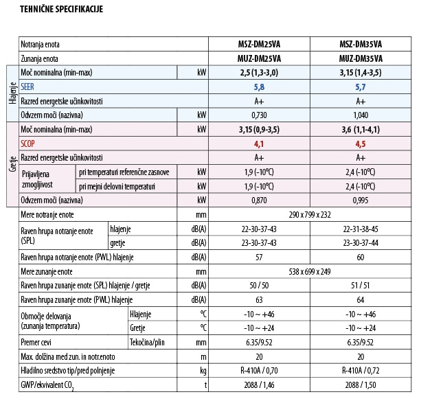 - na razpolago v enojni in multi izvedbi (z zunanjimi enotami serije MXZ-DM, za dvojček in trojček)
