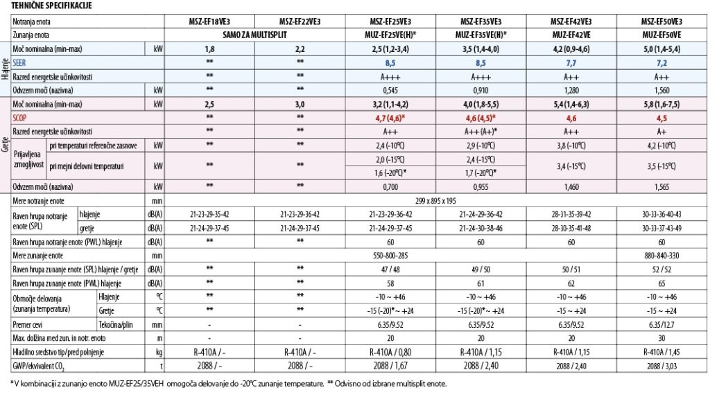 - učinkovito ogrevanje (razred sezonske učinkovitosti A++ pri modelih 25 in 35)