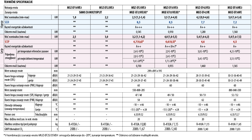 - varčno hlajenje (razred sezonske učinkovitosti A+++ pri modelih 25 in 35)