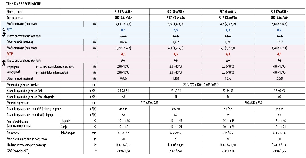 - gretje in hlajenje do -10°C zunanje temperature
