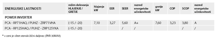 - visoka energetska učinkovitost hlajenja in ogrevanja