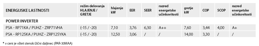 - hlajenje in ogrevanje deluje do zunanje temperature -15°